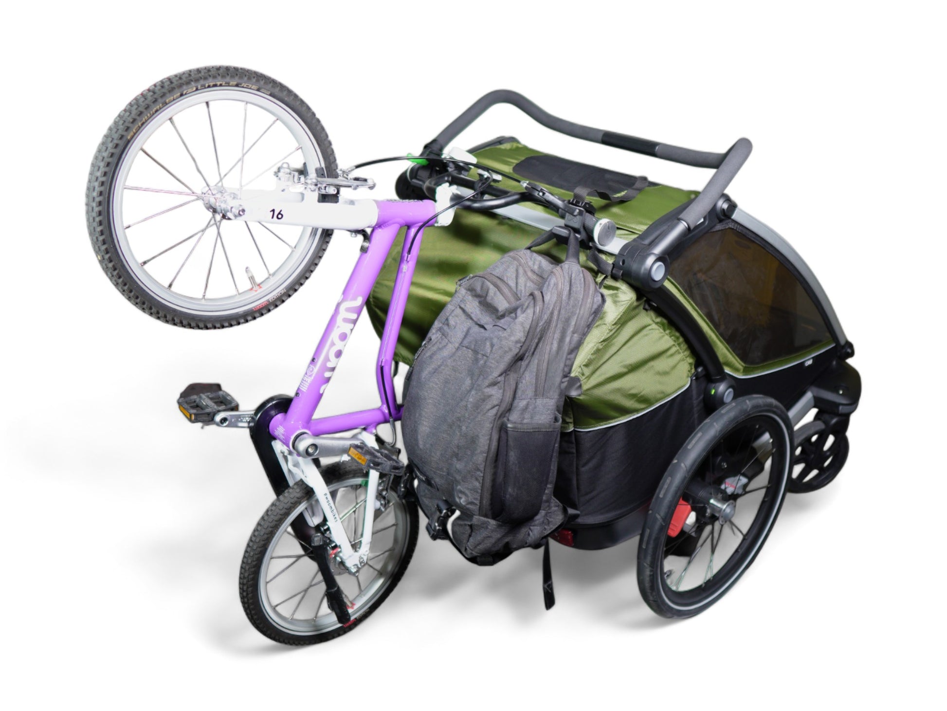 We’ve invested countless hours in refining the design to ensure both functionality and aesthetics. The result? A sleek, streamlined hook that seamlessly integrates with your Thule Chariot trailer. The bike can be mounted behind or above the trailer using additional straps.